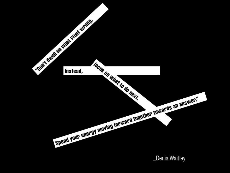 “Don’t dwell on what went wrong. Instead, focus on what to do next. Spend your energy moving forward together towards an answer.”_Denis Waitley