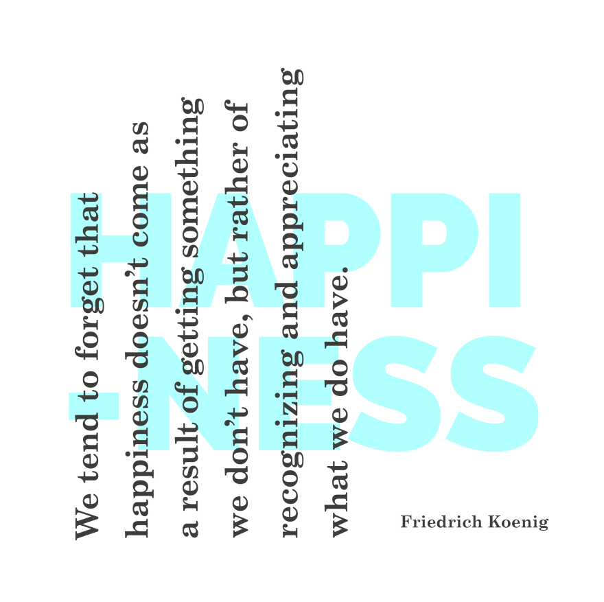 Most often, we yearn for happiness but yet neglecting the little detail or things which are supposed to illuminate the emotions which generates what we perceive as happiness. Happiness can be described in many ways, as happiness itself holds varied meanings from one person to another. Nevertheless, focusing on Friedrich Koenig’s quote, it is imperative to highlight the power of recognition and appreciation as both words if acknowledged goes a long way in pointing us in the right direction, either in pursuit of happiness, problem solving and other aspects of our daily lives.